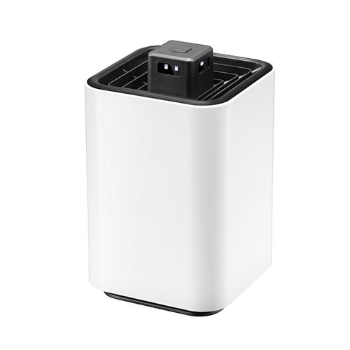 •清理储蚊室前,关掉电源开关,然后将储蚊室向左转动卸下,清理干净,重新装入向右旋转拧紧即可。